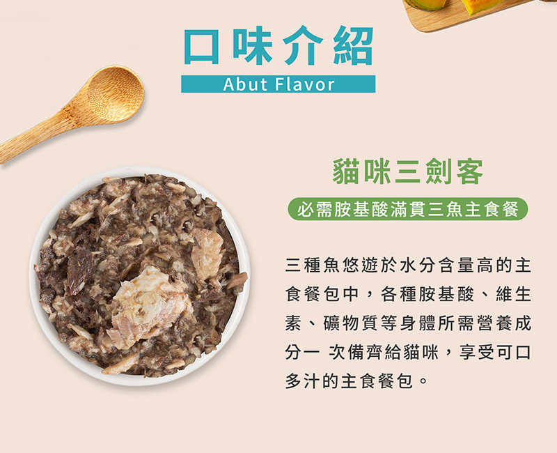 口味:貓咪三劍客-鮭魚+鯖魚+鮪魚