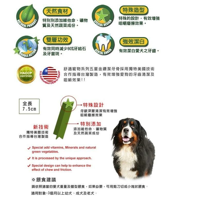 商品:舒適寵物系列 五星金鑽牛奶潔牙骨