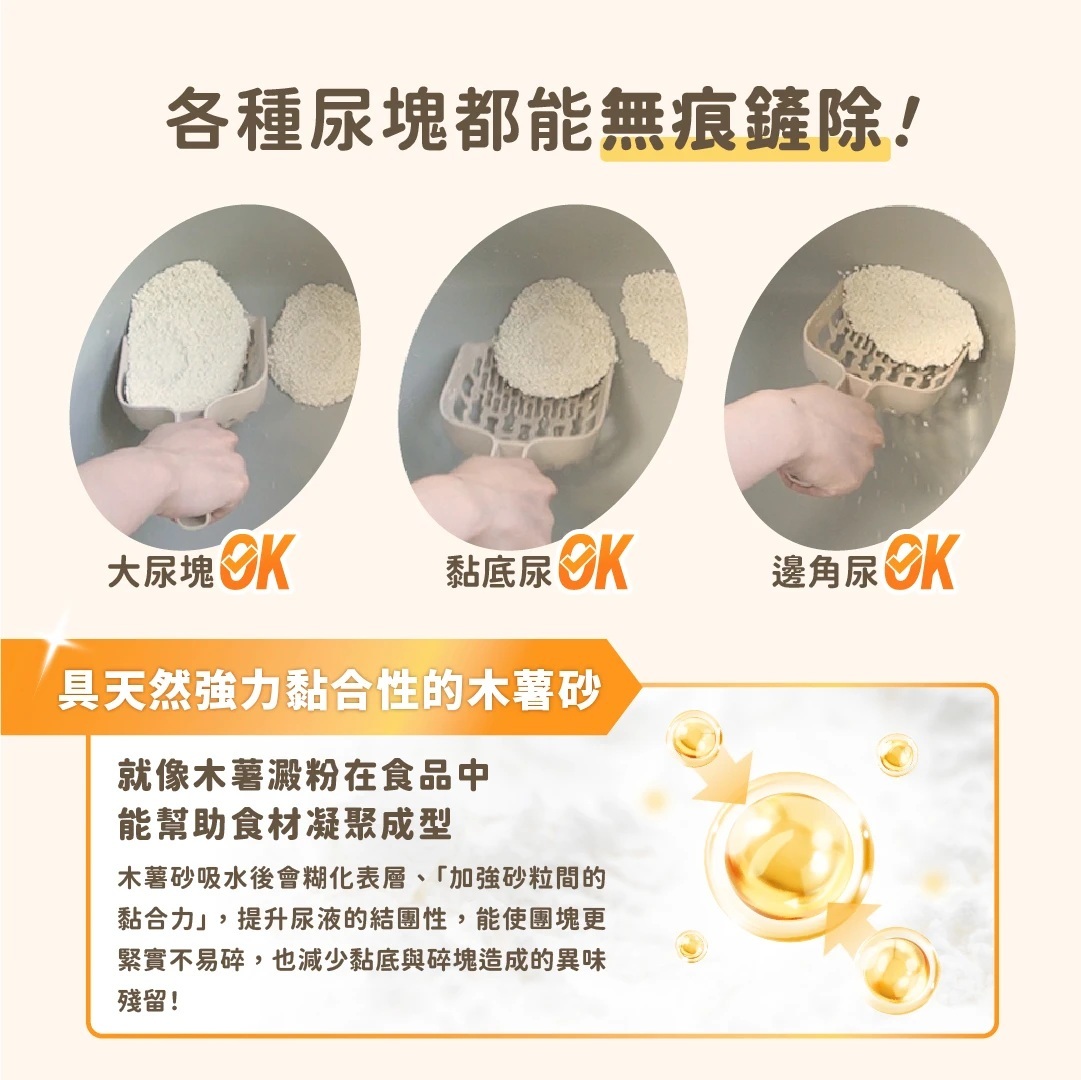 • 凝結力強:木薯結團強,邊角尿也能一次鏟除