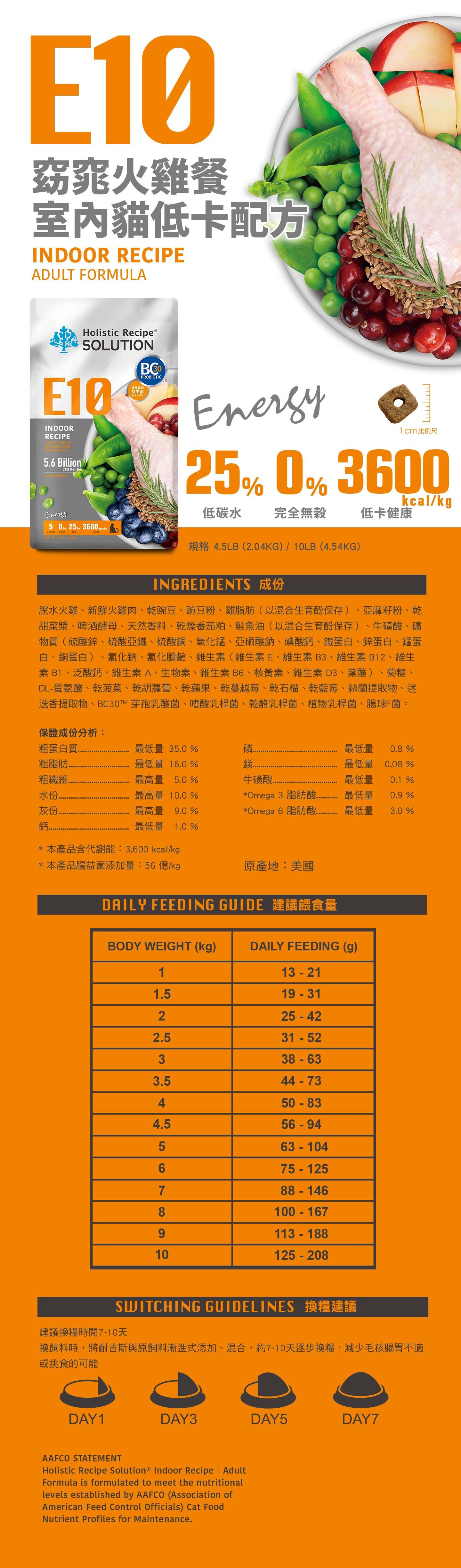 商品: E10 無穀窈窕火雞餐 室內貓 低卡 貓飼料