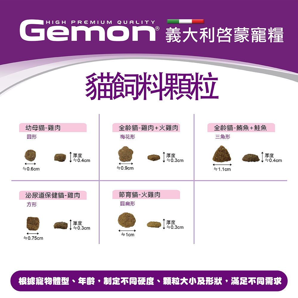◆ 依各年齡制定顆粒大小,制定各年齡所需營養配方