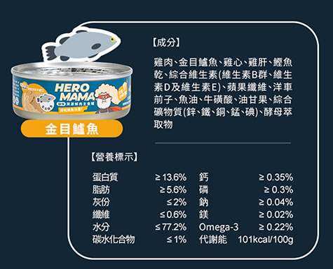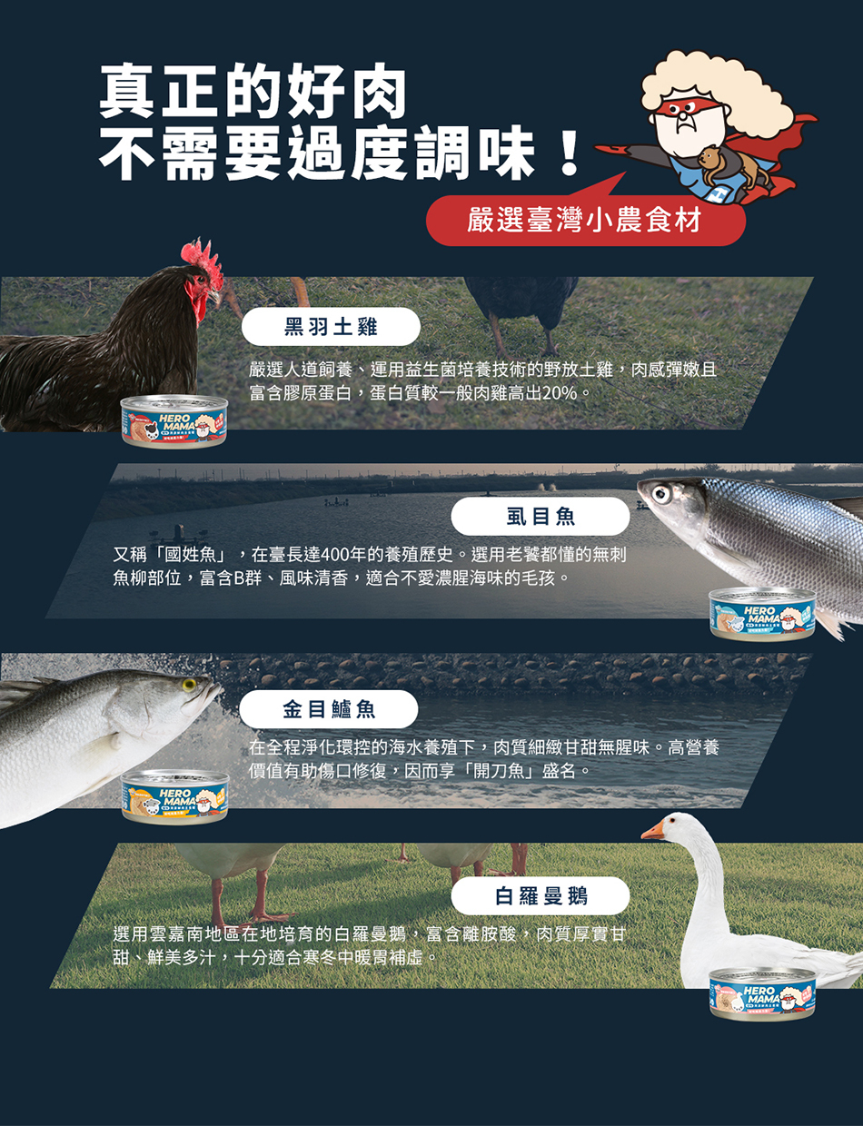 口味:黑羽土雞 / 金目鱸魚 / 虱目魚 / 白羅曼鵝
