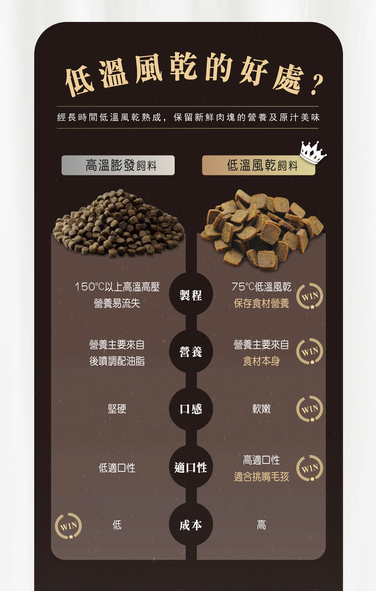 獨家低溫風乾技術,保留食材的美味以及營養。