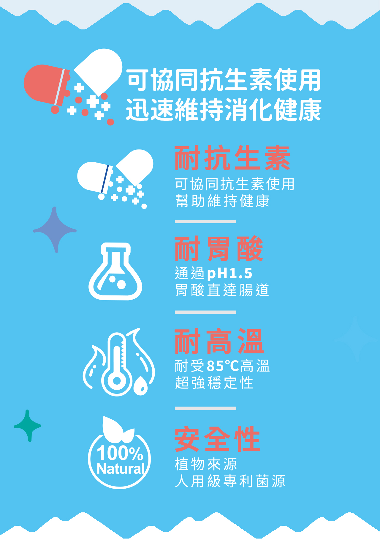 耐抗生素:可協同耐受抗生素治療,幫助維持健康
