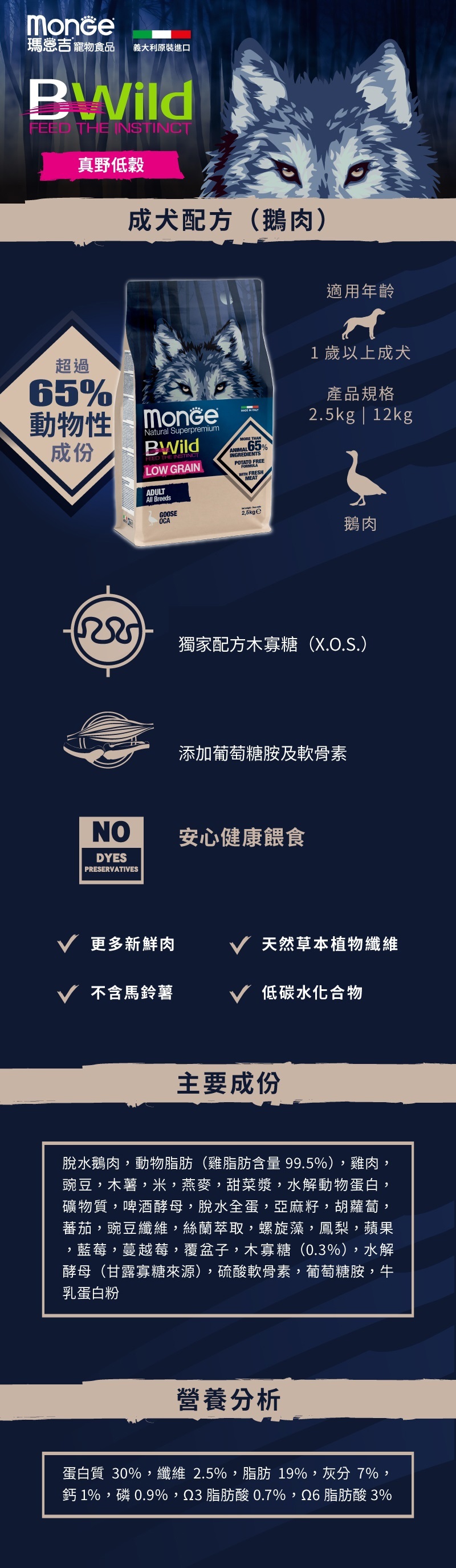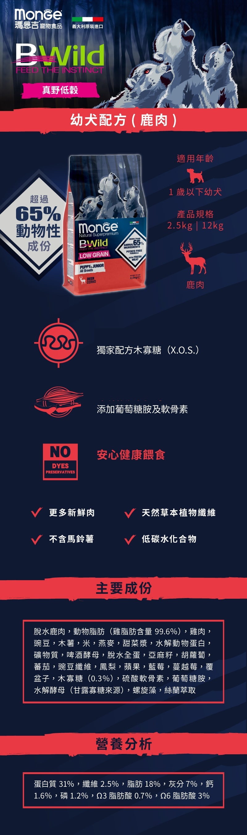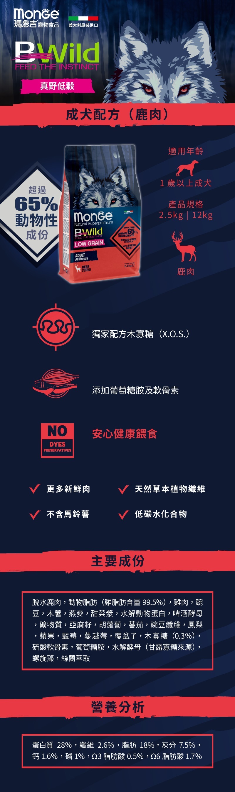 ● 超過65%動物食材來源,滿足對肉類的本能需求