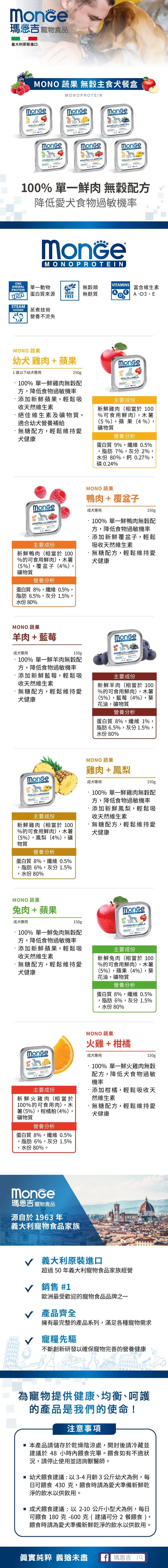 ● 100%單一鮮肉無穀配方,降低愛犬食物過敏機率