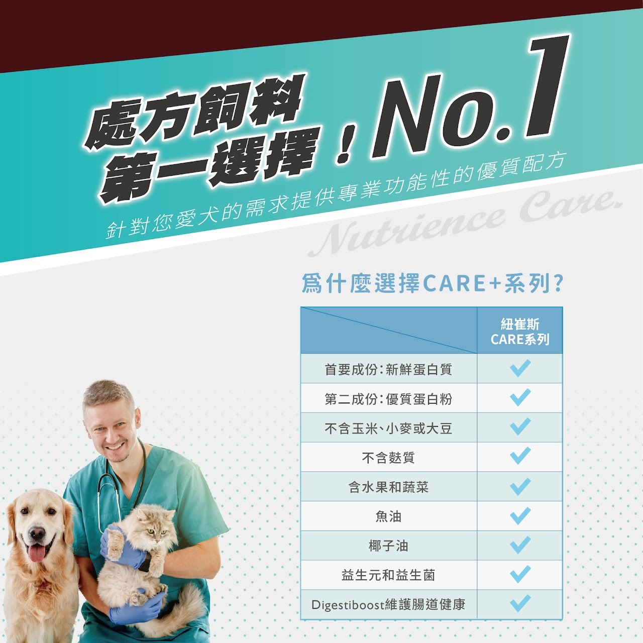 紐崔斯推出的新系列 天然無穀處方飼料 CARE+系列