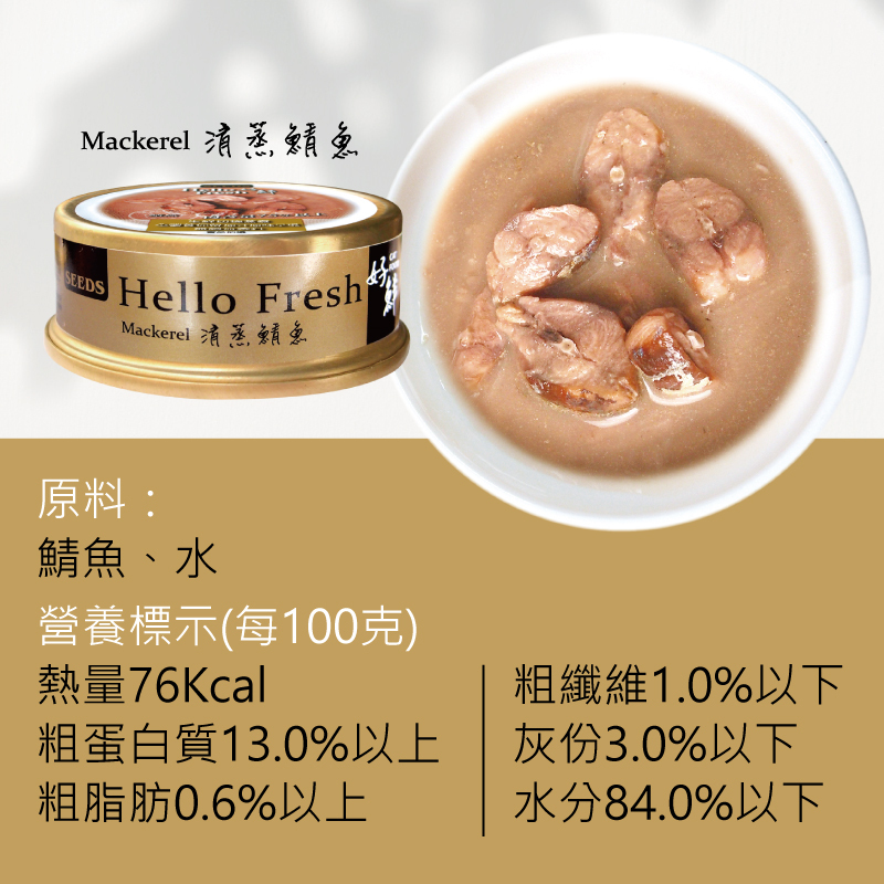 口味:清蒸雞肉、清蒸雞肉+牛肉、清蒸鮪魚、清蒸鮪魚+鮭魚、清蒸鯖魚