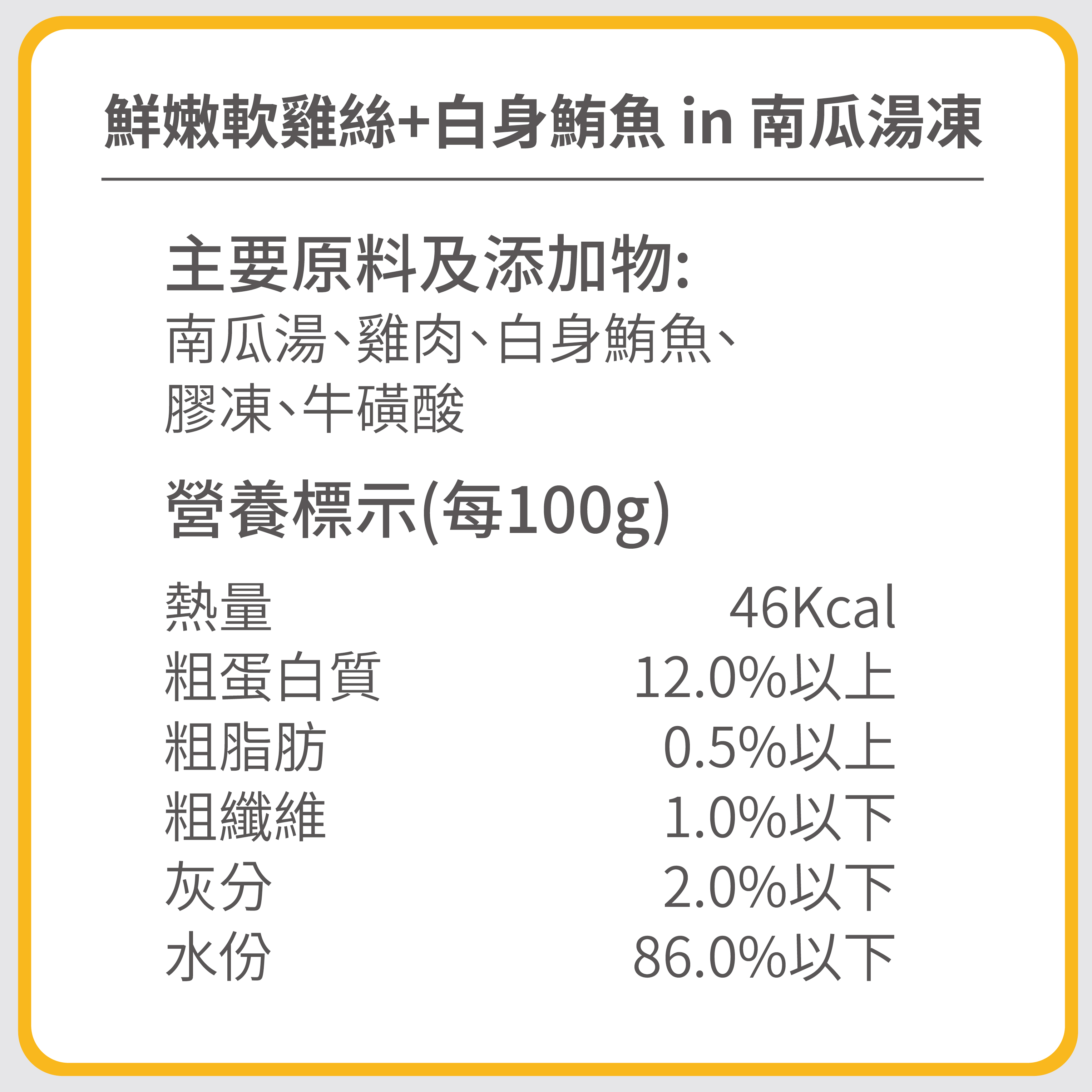 鮮嫩軟雞絲+白身鮪魚 in 南瓜湯凍