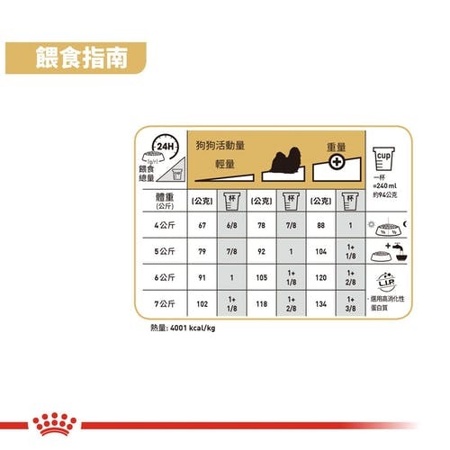 成分:米、脫水禽肉蛋白、動物脂肪、植物分離蛋白*、水解動物蛋白、植物纖維、甜菜漿、礦物質、魚油、大豆油、果寡糖、琉璃苣油、金盞花萃取物 (葉黃素來源)、水解甲殼素(葡萄糖胺)、水解軟骨(軟骨素來源) *LIP:(植物分離蛋白)精選高消化性蛋白質具有極易吸收的特性 營養成分分析: 蛋白質:24% - 脂肪:20% - 纖維素:3% - 灰份:5.8% - NFE:37.7%