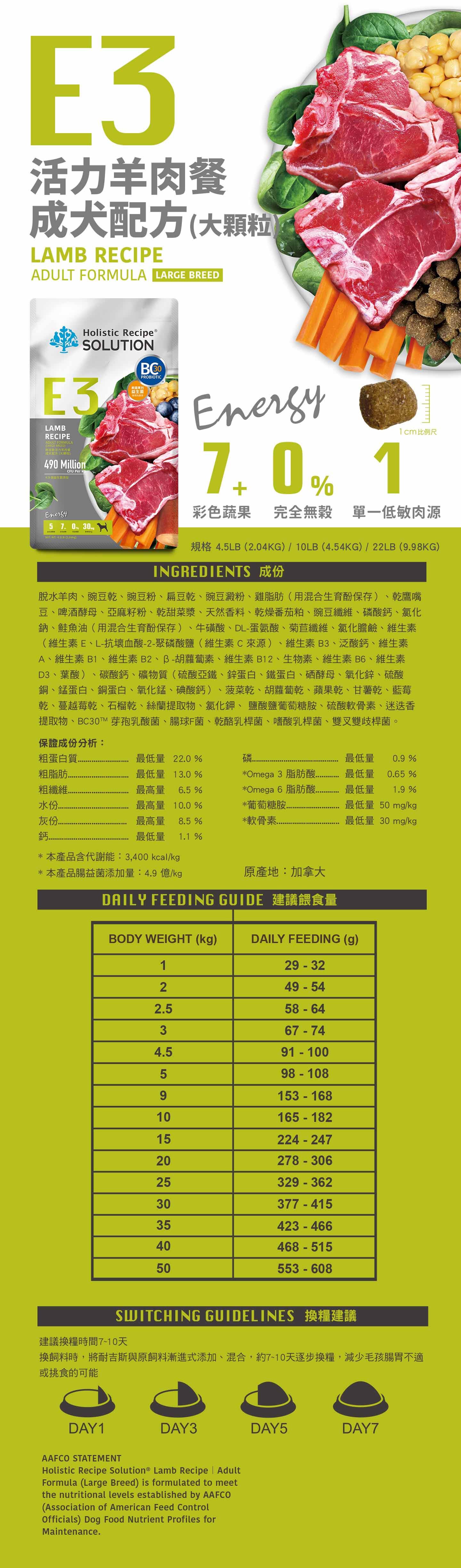 商品: E3 無穀活力羊肉餐 成犬 (大顆粒)