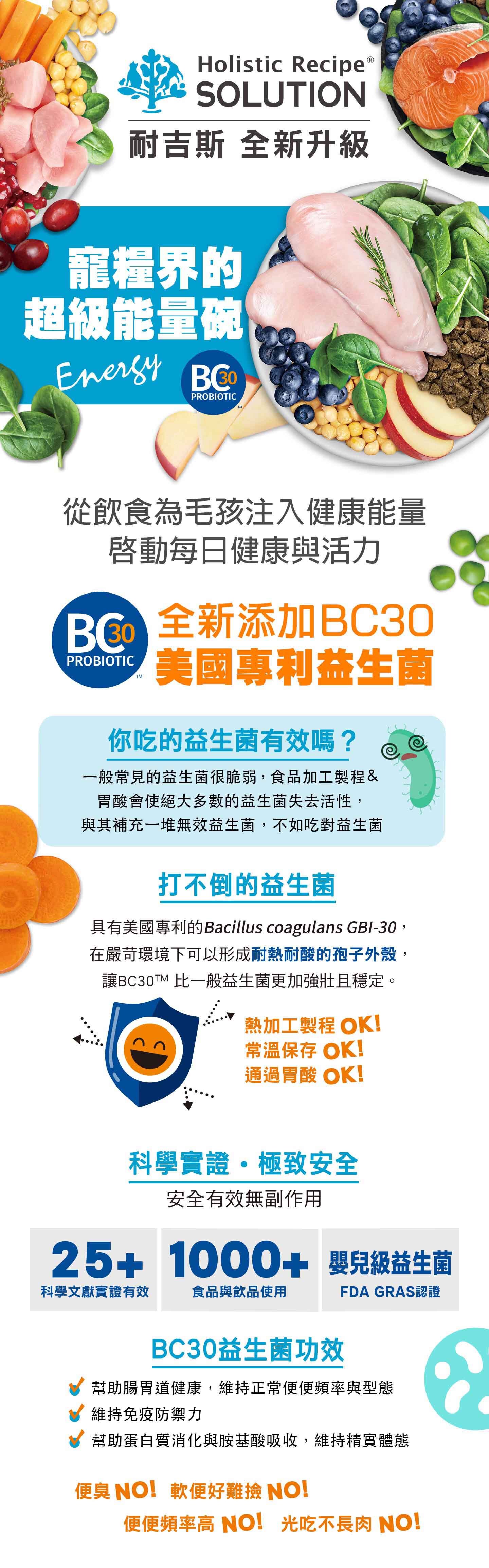 1. BC30™ 美國專利益生菌 - 具有耐熱耐酸防護盾,科學實證,有效守護腸道健康
