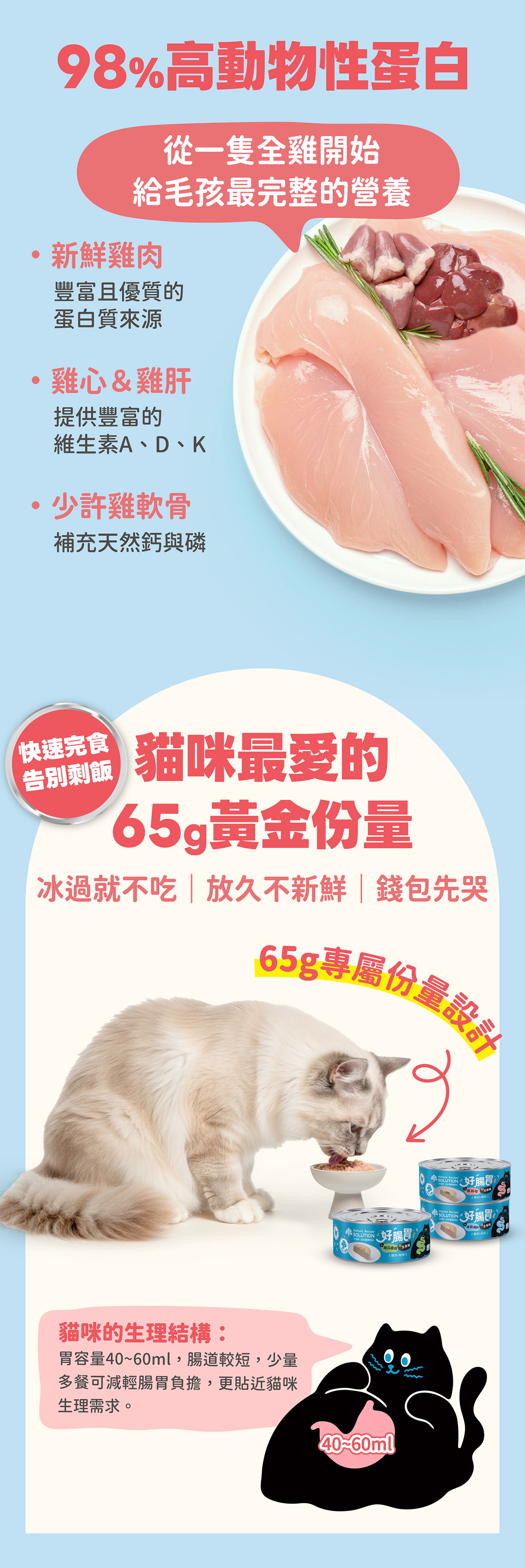 98% 動物性蛋白打造健康腸道