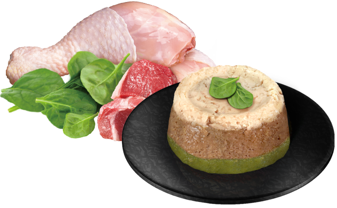 成份:水、雞肉、鮪魚、雞肉脂肪、牛肉、菠菜、木薯澱粉、纖維素、牛肝、酵母提取物、鹽、馬鈴薯纖維、葡萄糖、魚湯、瓜爾膠、愛爾蘭海藻膠