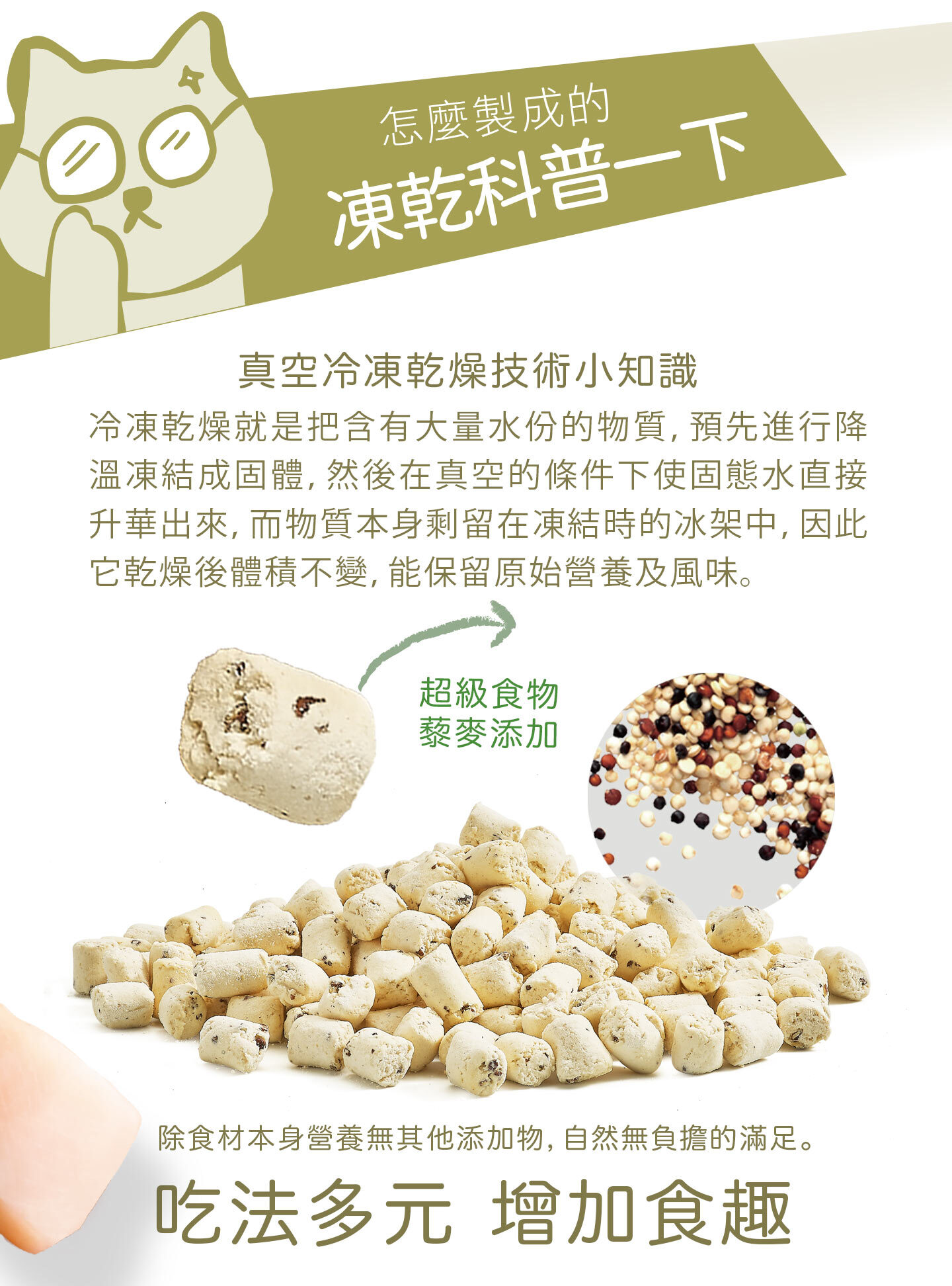 搭配乾乾 - 適量撒在飼料上,增加豐富性