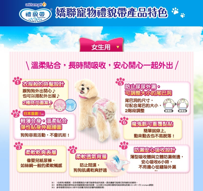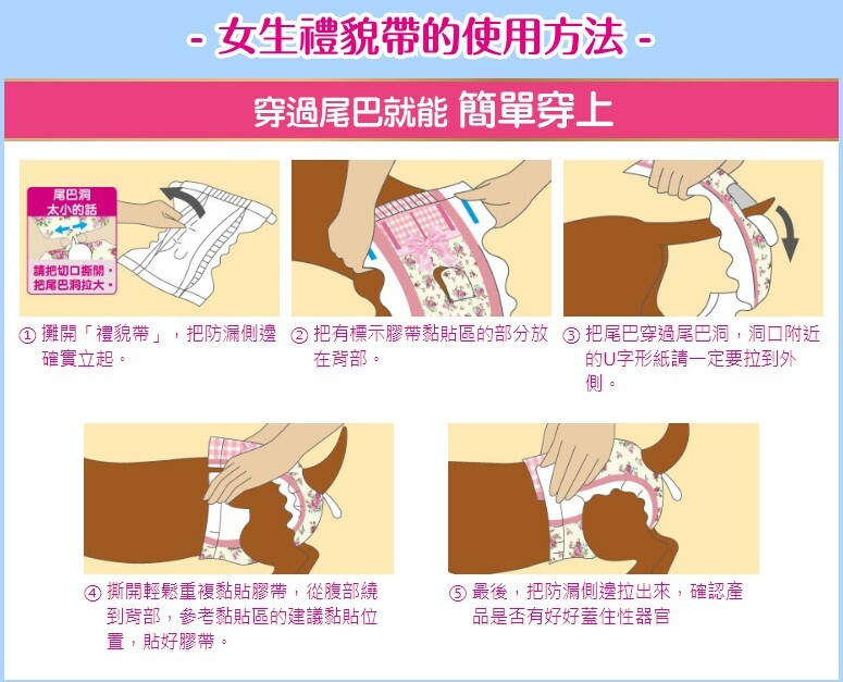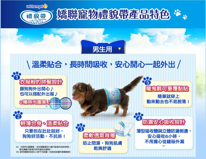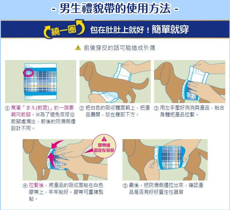 ◆ 只要幫您的寶貝穿上禮貌帶,防止公狗抬腳尿尿外也可當服裝裝飾。