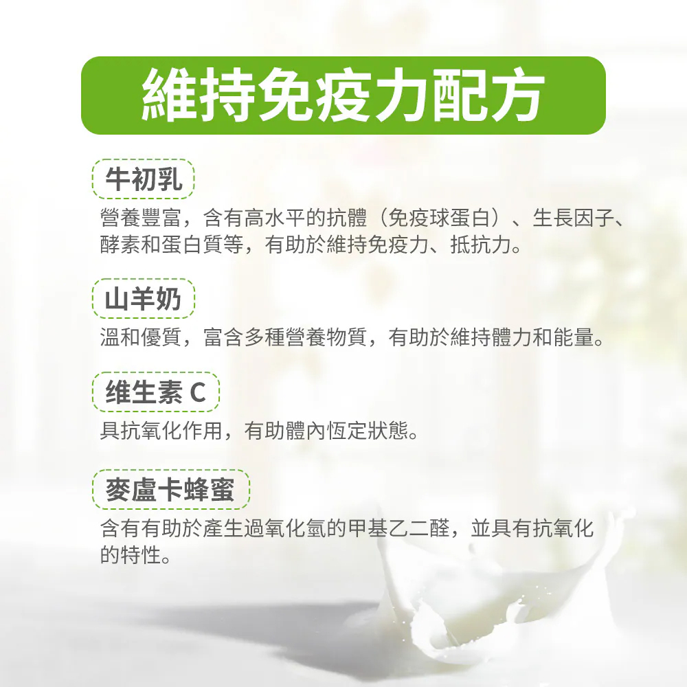 ◆麥盧卡蜂蜜、初乳、維生素 C 和羊奶具有 4 種強身作用。