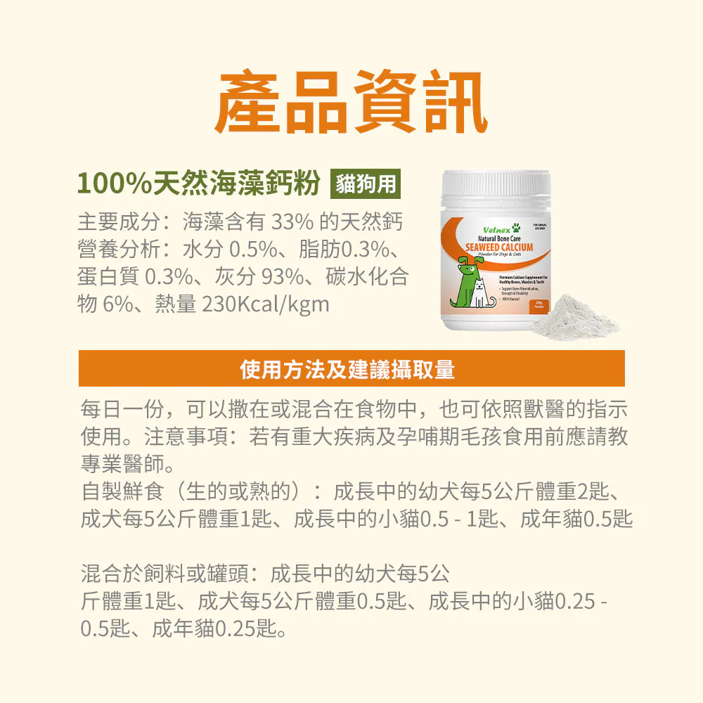 注意事項:若有重大疾病及孕哺期毛孩食用前應請教專業醫師。