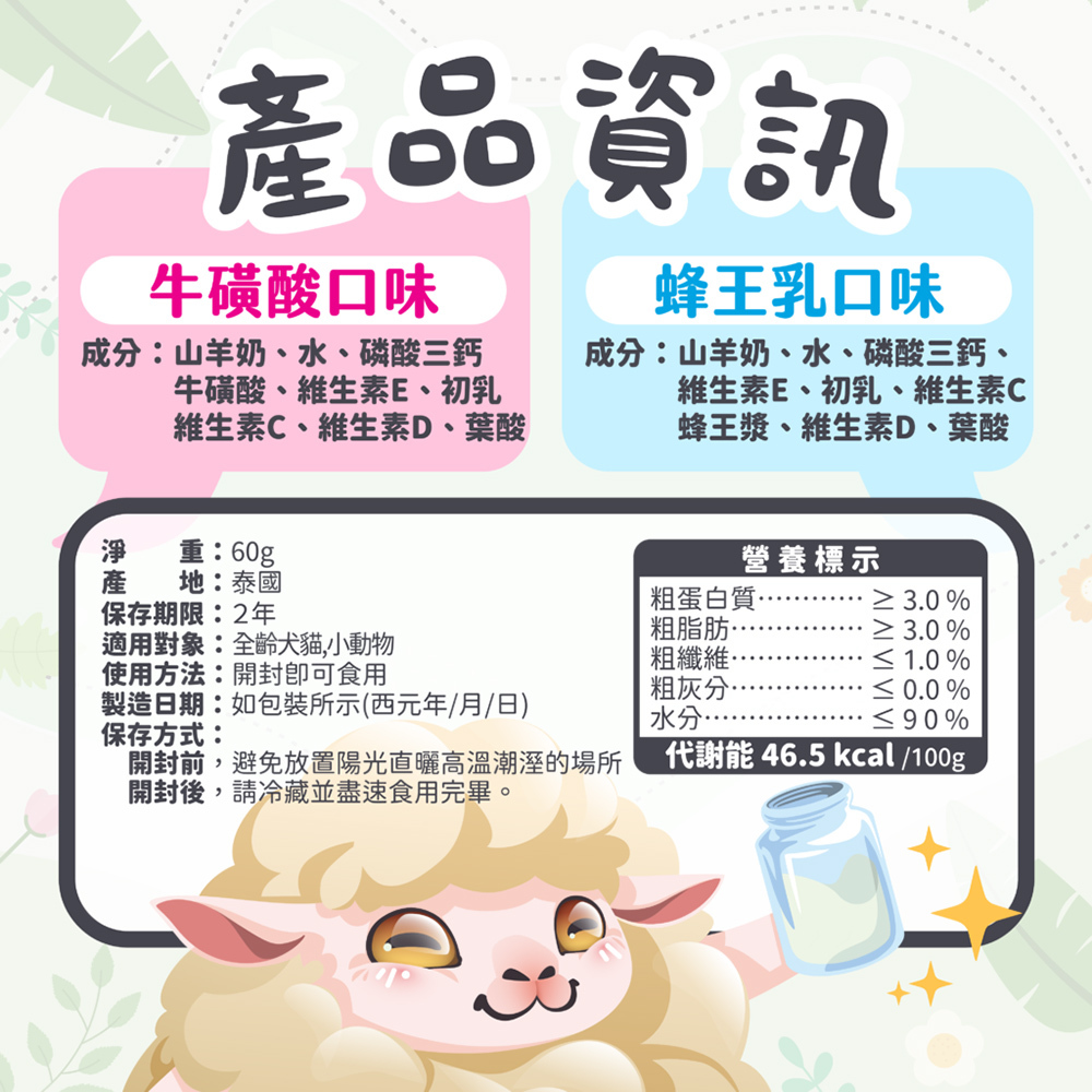 🐾 使用新鮮山羊奶全程滅菌並添加初乳製成
