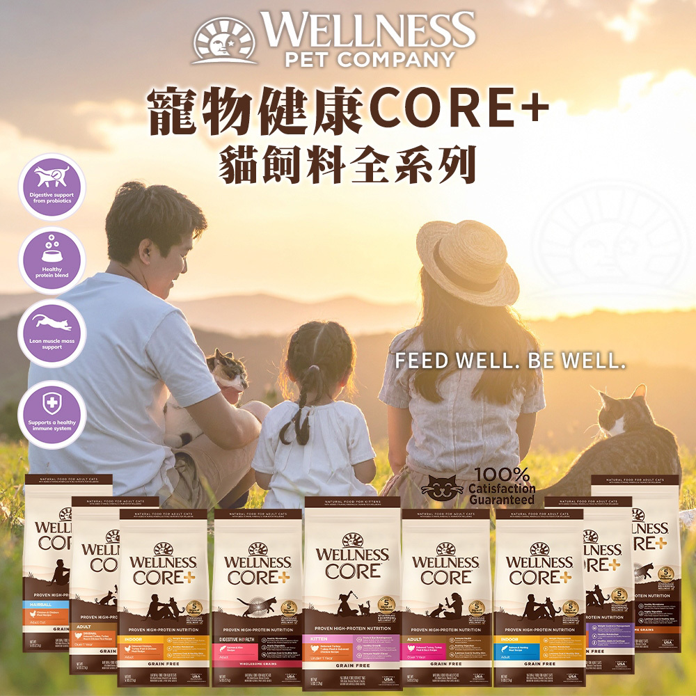 使用Wellness CORE® 的乾糧和及罐頭能為貓帶來美好的用餐體驗。