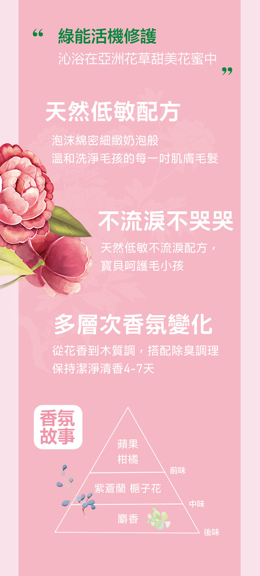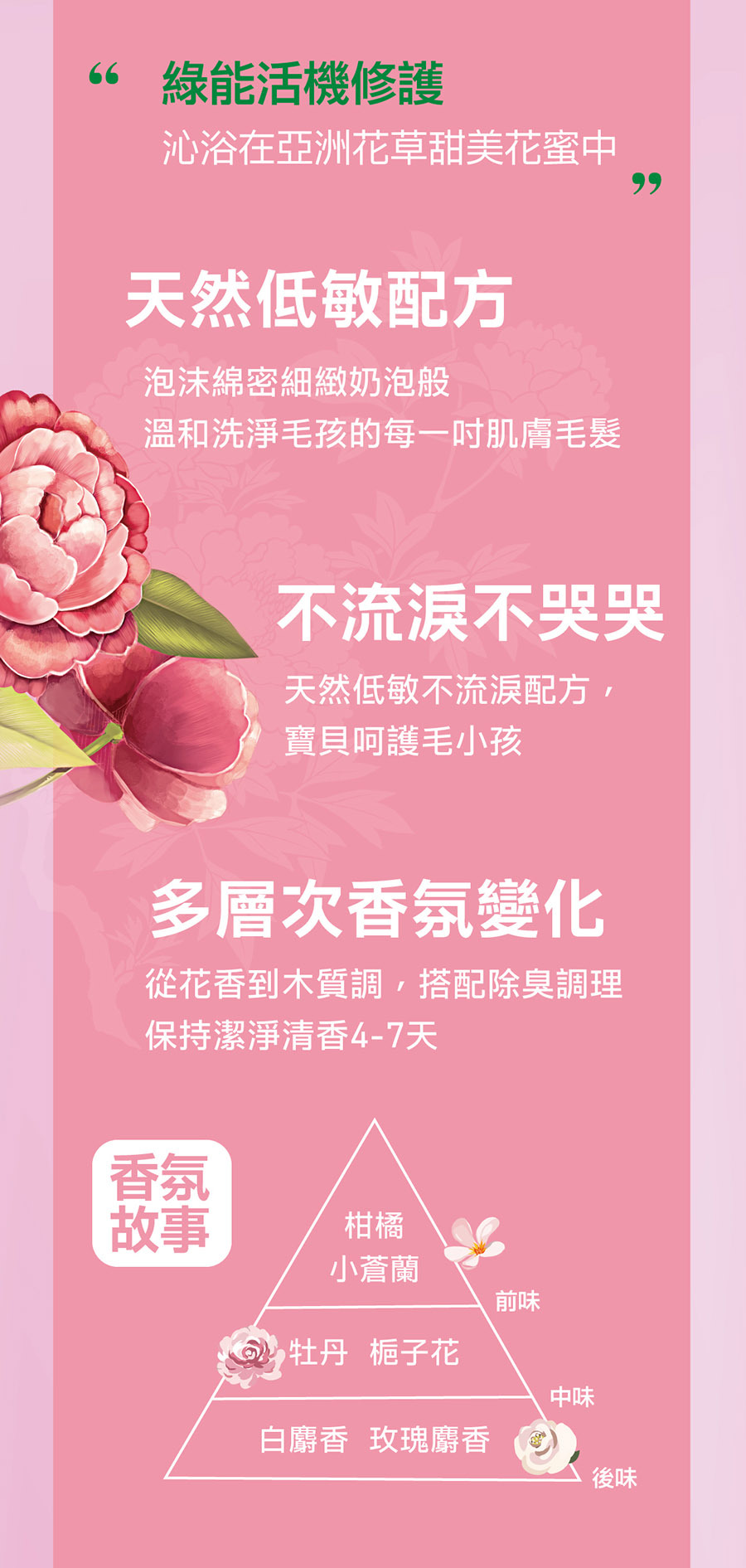 -- 第一道洗淨用:美容過程的第一道洗淨專用,將堆積的髒污洗淨後,再使用保養沐浴乳或是護毛乳來達成最佳美容效果