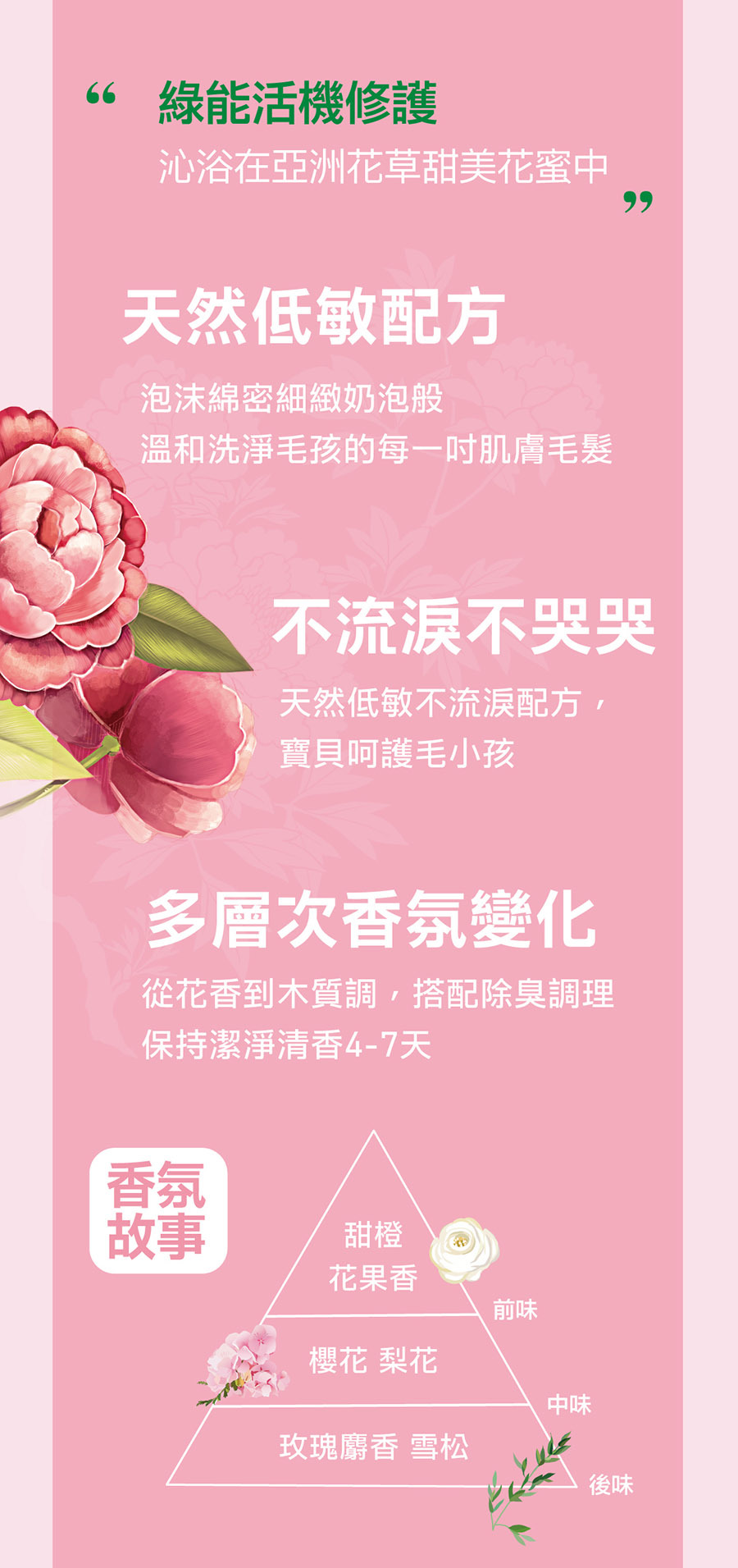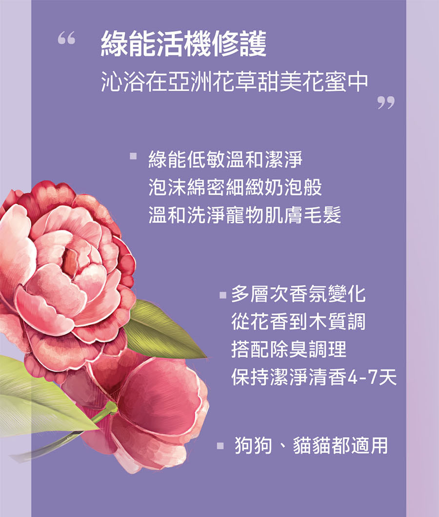 喜瑪拉雅山岩鹽與深層潔淨因子,能有效深層潔淨毛髮,針對極度骯髒、出油的寵物,能有效地深層去除污漬和長久堆積油垢,使毛髮得到深層又溫和的潔淨。喜瑪拉雅山岩鹽的豐富礦物質能修護寵物毛髮和肌膚,毛髮變的清爽健康!